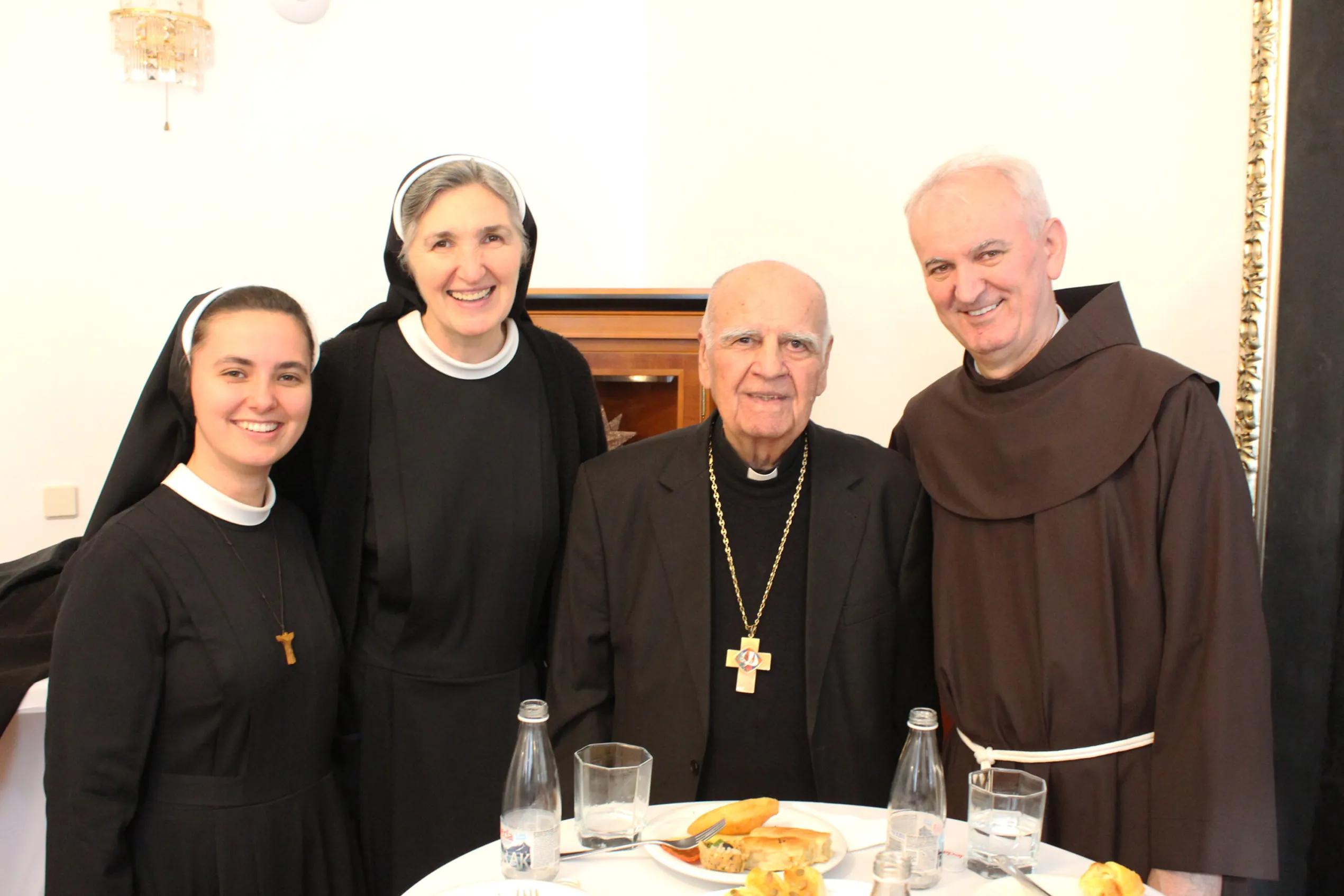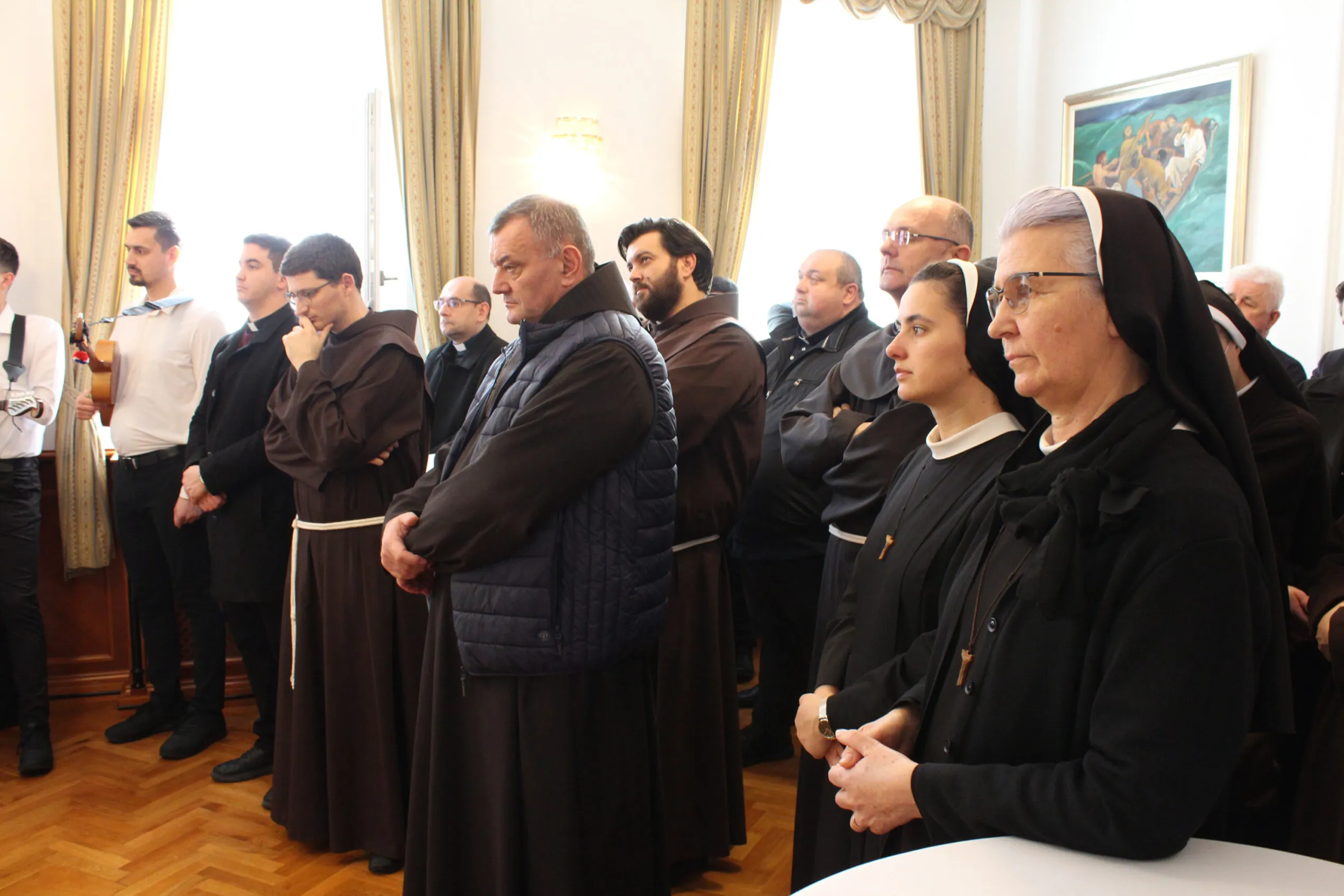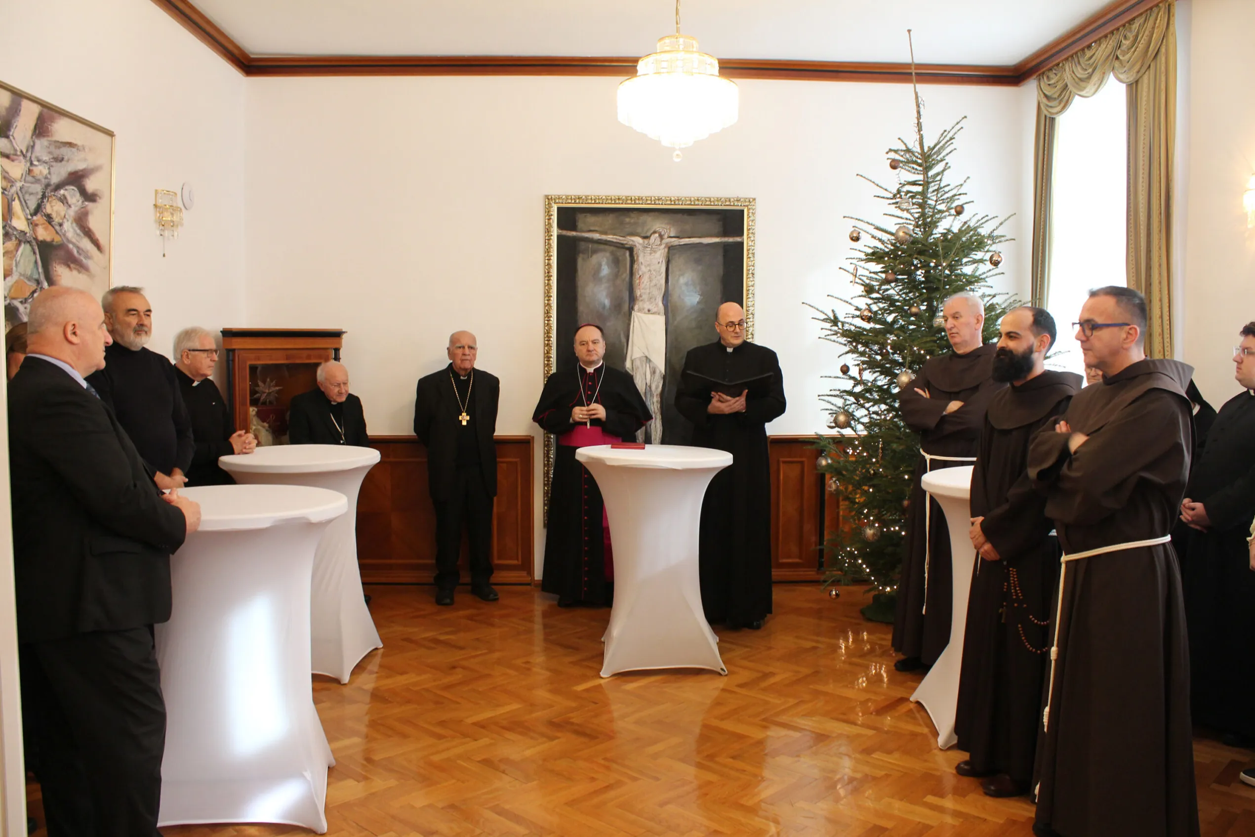 U Biskupskom ordinarijatu u Mostaru u četvrtak, 18. prosinca 2025., održan je božićni prijam i čestitanje u zajedništvu s mostarsko-duvanjskim biskupom i apostolskim upraviteljem Trebinjsko-mrkanske biskupije mons. Petrom Palićem. Susretu su nazočili nadbiskup Aldo Cavalli, biskup u miru Ratko Perić, provincijal fra Jozo Grbeš, svećenici, redovnici i redovnice, djelatnici Biskupskog ordinarijata te vjernici laici koji djeluju u ustanovama Mostarsko-duvanjske i Trebinjsko-mrkanske biskupije.